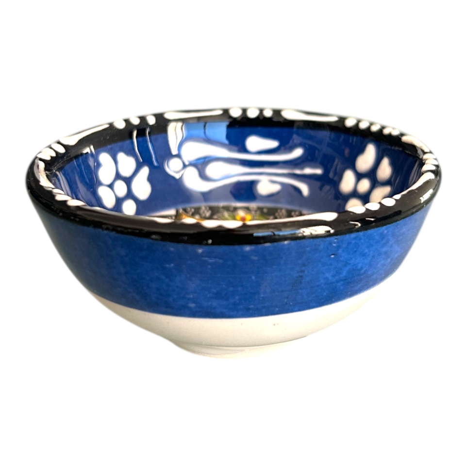 Bol mic din ceramica, lucrat manual, albastru inchis, pentru sosuri, alune, nuci, bijuterii