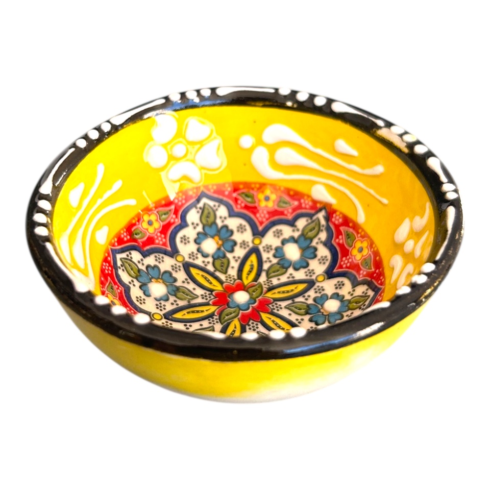 Bol mic din ceramica, lucrat manual, galben, pentru sosuri, alune, nuci, bijuterii