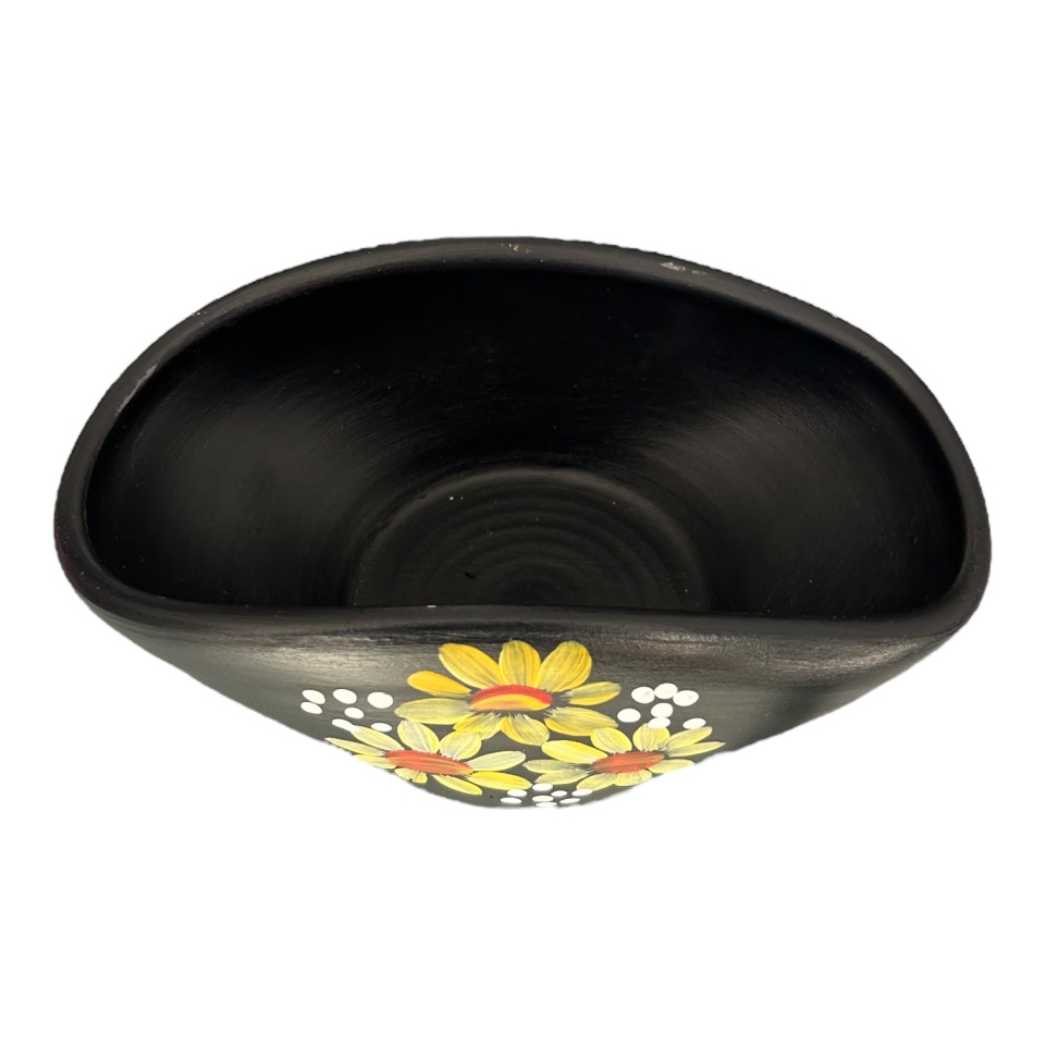 Această bombonieră din ceramică îmbină utilul cu esteticul. Pictată manual cu flori galbene pline de vitalitate, pe un fundal negru elegant, este perfectă pentru a păstra dulciuri, biscuiți sau mici accesorii, dar și pentru a aduce un accent decorativ deosebit în casă.