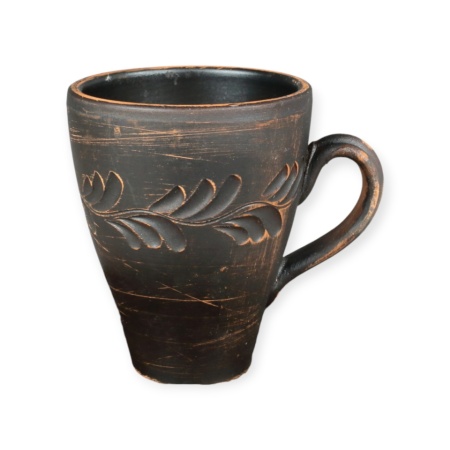 Cană realizată manual din lut ars, cu o capacitate de 220 ml, perfectă pentru cafea, ceai sau apă. Fiecare piesă este lucrată artizanal și sculptată cu modele unice, păstrând frumusețea și tradiția ceramicii autentice.