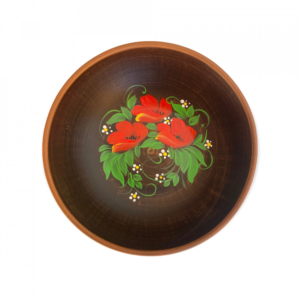 Castron maro din ceramica, pictat manual, maci