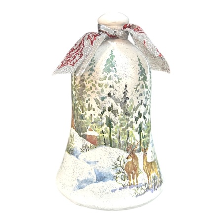 Decoratiune de Craciun, forma de clopotel 20 cm cu peisaj de iarna, autentic Martinescu Marginea