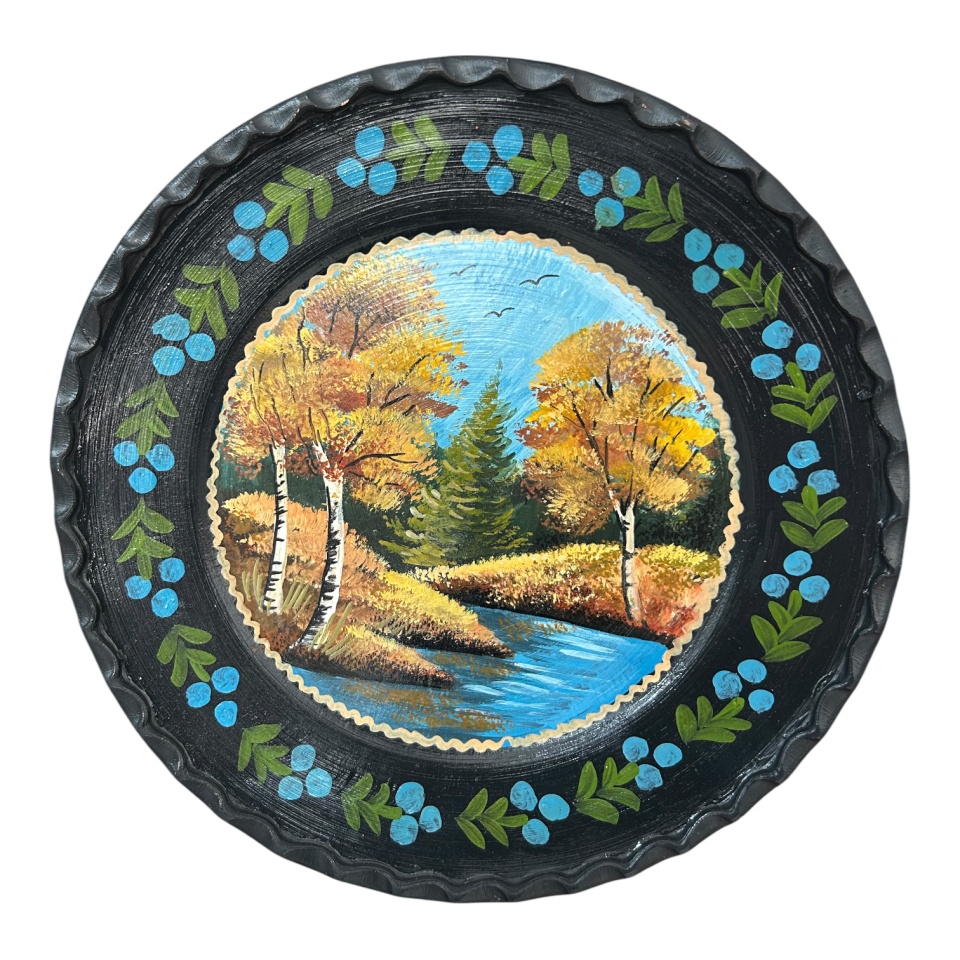 Farfurie de perete, pictata manual, unicat, peisaj de toamna
