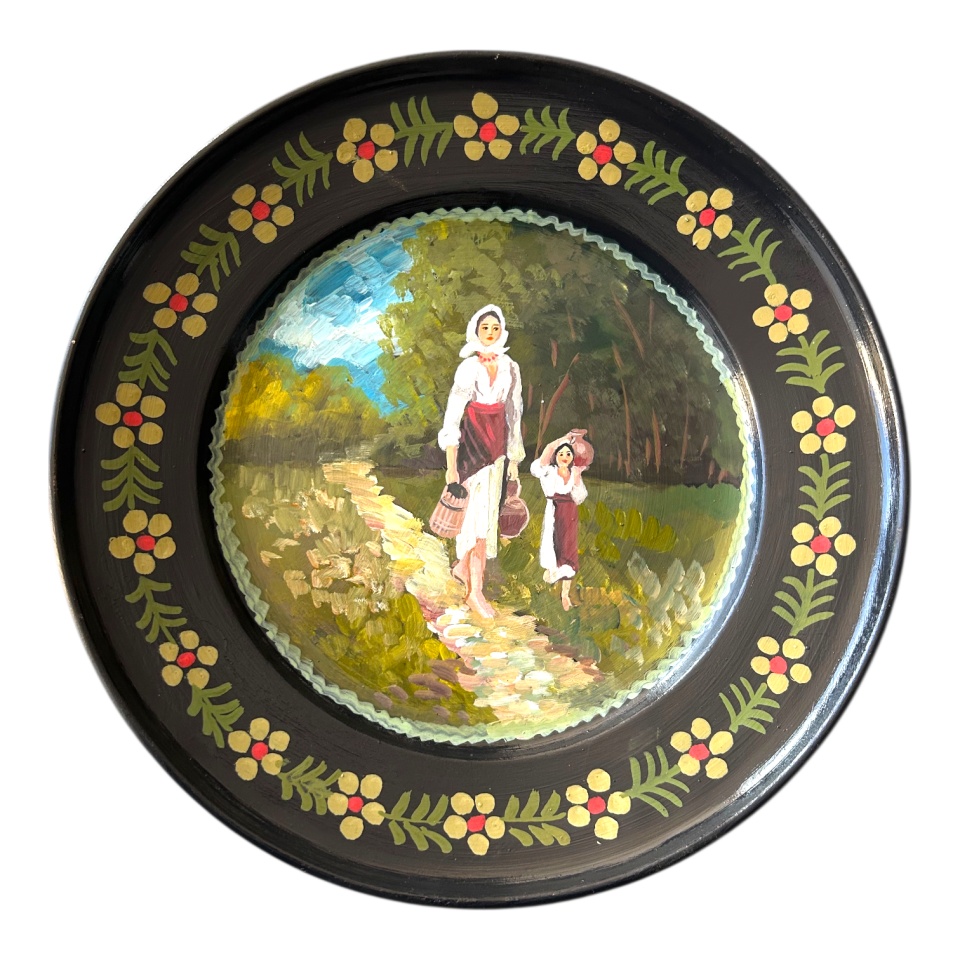 Adaugă farmecul și culoarea vieții rurale românești în decorul casei tale cu această farfurie decorativă de 30 cm, realizată manual din Ceramica de Marginea. Scena pictată surprinde țărăncuțe în port popular, evocând tradițiile și atmosfera autentică a satului românesc, inspirată din universul artistic al pictorului Nicolae Grigorescu.