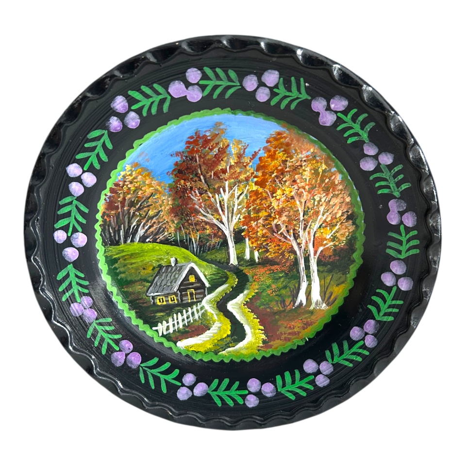 Farfurie decorativa autentica pictata manual din ceramica de Marginea, 20 cm