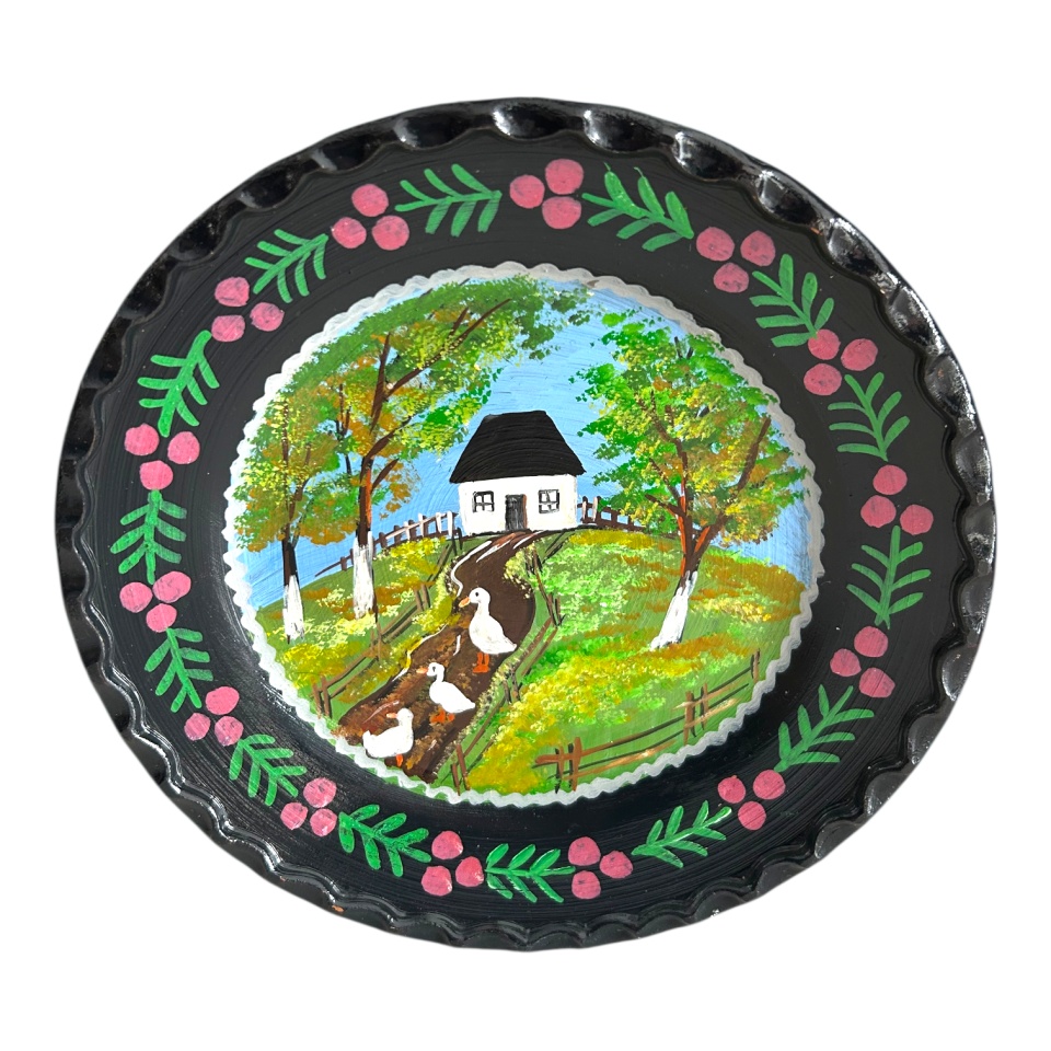 Aceasta farfurie decorativa este realizata din ceramica traditionala de Marginea si pictata manual, fiecare model avand detalii distincte. Produsul este destinat decorului interior si colectiilor de arta populara.