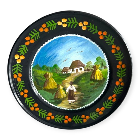 Obiect decorativ realizat artizanal, cu detalii pictate manual si design traditional. Farfuria are diametrul de 24 cm si vine cu prindere pentru perete. Creata in atelierul Ceramica Martinescu din Marginea.