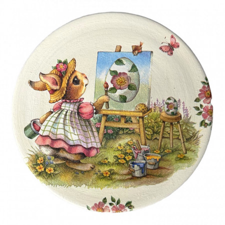 - Farfurie din lut, de perete, iepurasi