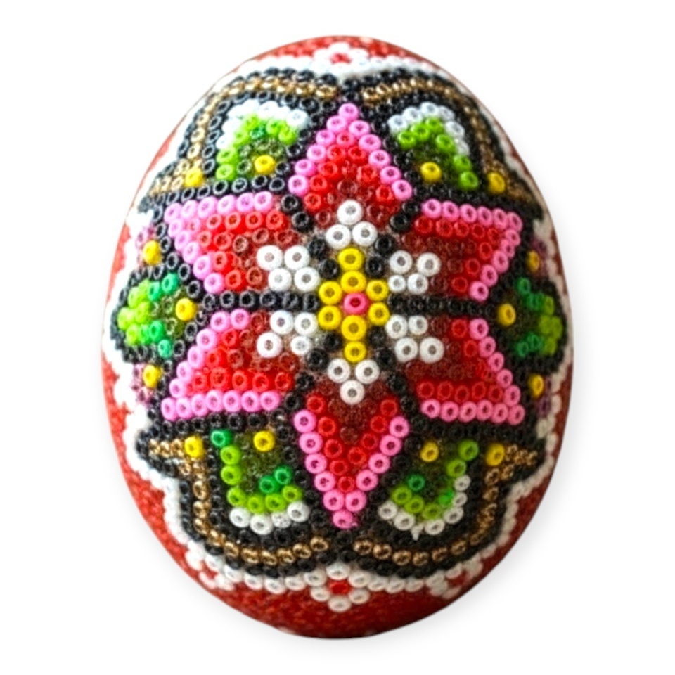 Adauga un strop de traditie si culoare casei tale cu acest ou din lemn decorat manual cu margele. Fiecare ou este realizat cu migala, avand modele unice care il fac perfect pentru decoratiuni de Paste sau cadouri speciale. Dimensiune: 5 cm. Ideal pentru colectii, decoratiuni sau suveniruri autentice.