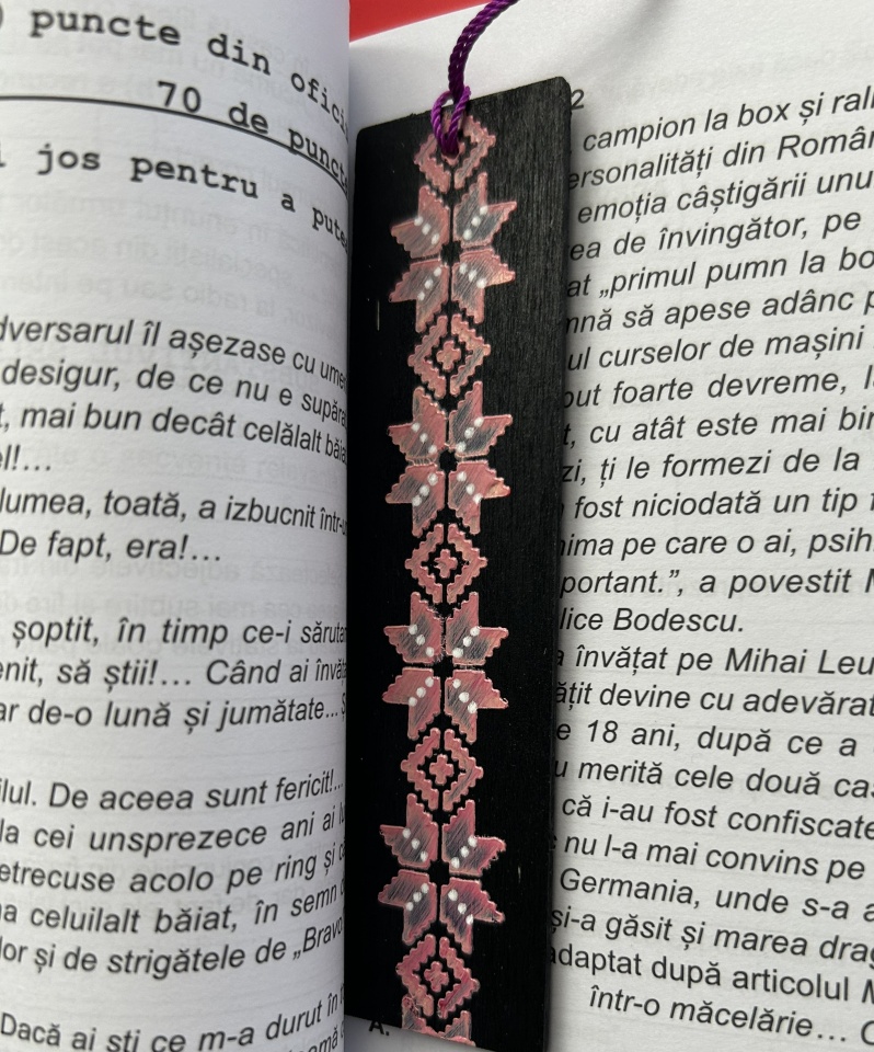 Semne de carte din lemn pictate manual – motive tradiționale românești