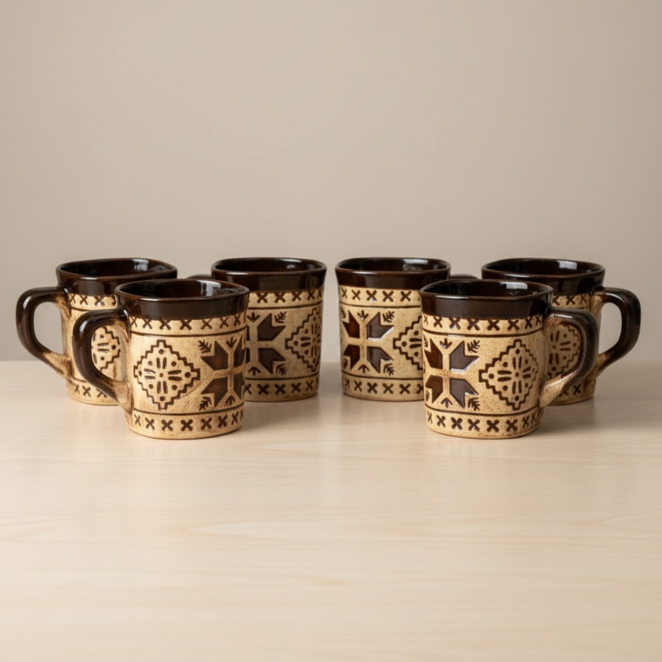Set 6 cani din ceramica cu motive traditionale, 180 ml, pentru ceai, apa sau vin
