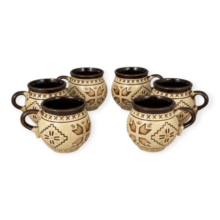 Set 6 cani din ceramica traditionala, 180 ml, pentru ceai, apa sau vin