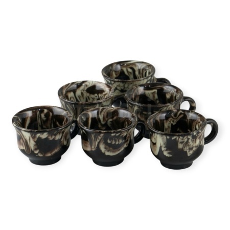 Acest set de 6 canite din lut pentru tuica, glazurate si negre, este realizat manual in Romania, pastrand autenticitatea si traditia ceramicii rustice. Fiecare piesa este unica, ideala pentru servirea tuicii sau a altor bauturi traditionale in portii mici.