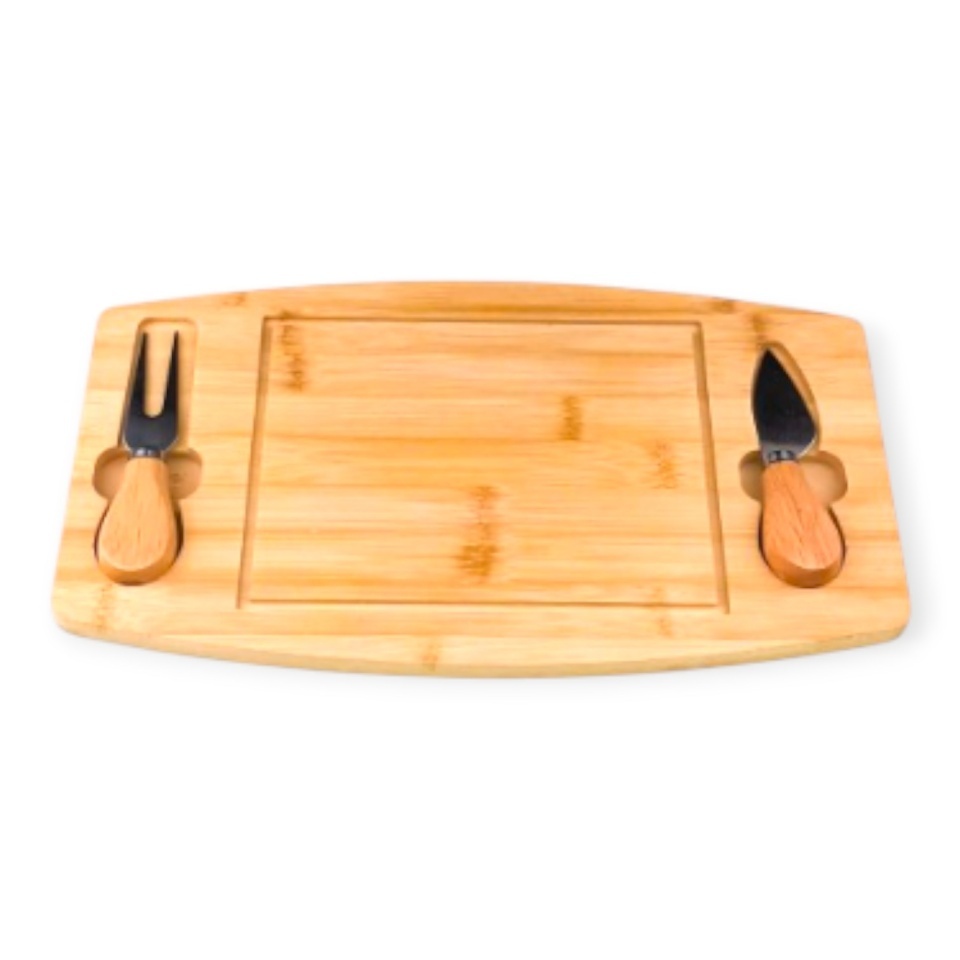 Tocator pentru branzeturi,lemn de bambus, cutit si furculita, 33 x 19 cm
