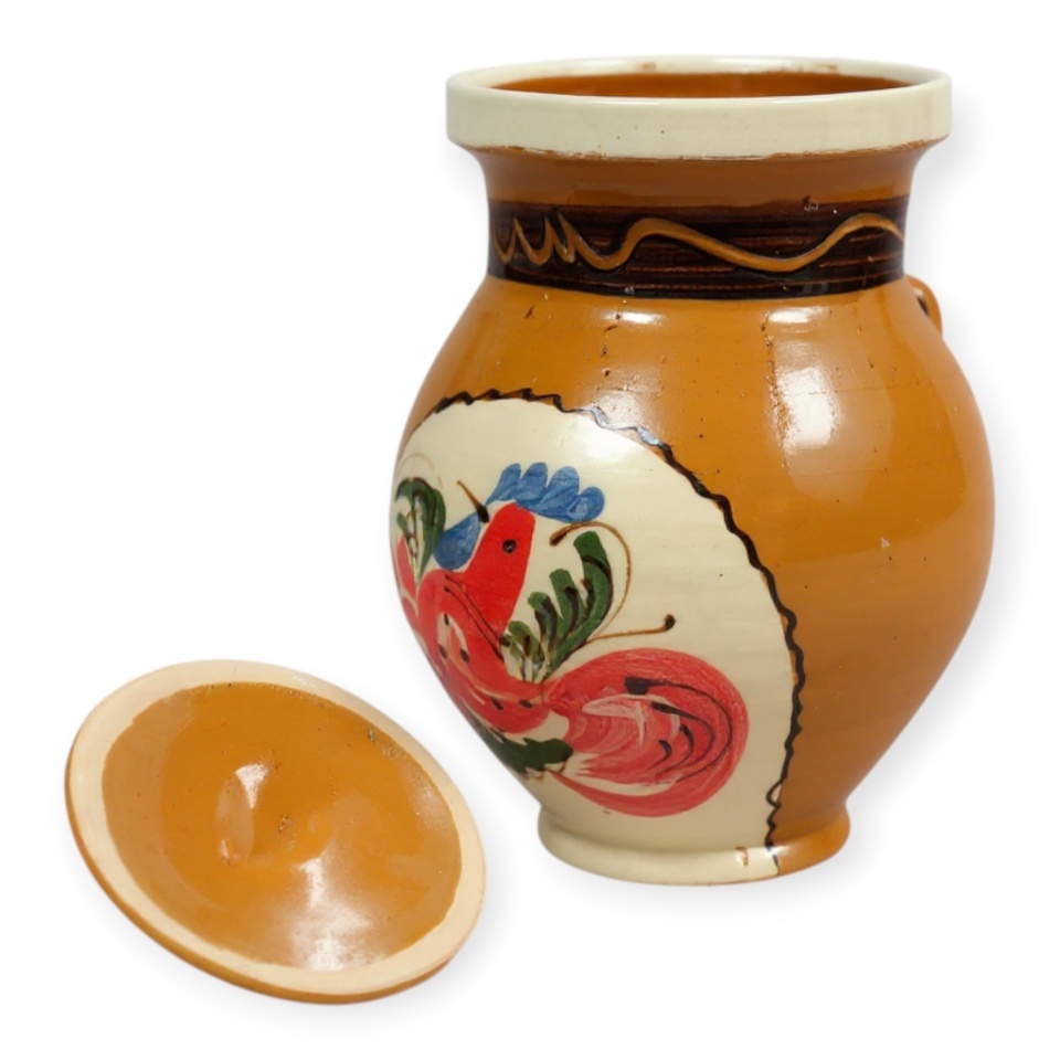 Ulcior ceramic cu capac, 1 litru, pentru lapte, apa, vin, lucrat manual in Romania