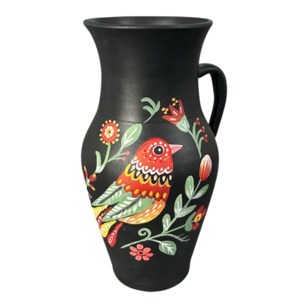 Ulcior decorativ 30 cm pictat manual – ceramica traditionala Martinescu Marginea, pasare, flori si motive populare