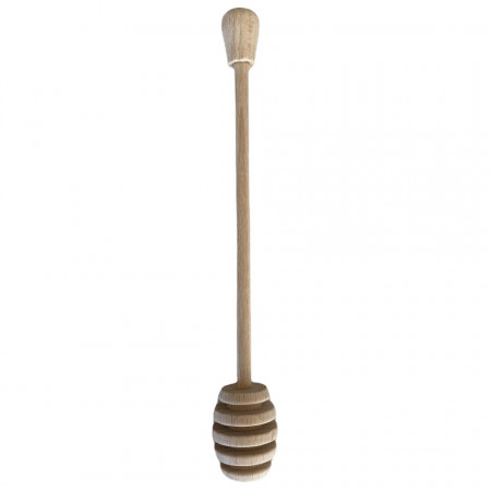 Ustensila practica pentru servirea mierii, realizata din lemn natural de calitate. Lungime 17 cm, ergonomica si usor de utilizat, ideala pentru a adauga mierea in ceai, deserturi sau alte preparate fara sa faca murdarie. Design simplu si functional, potrivita pentru orice bucatarie.