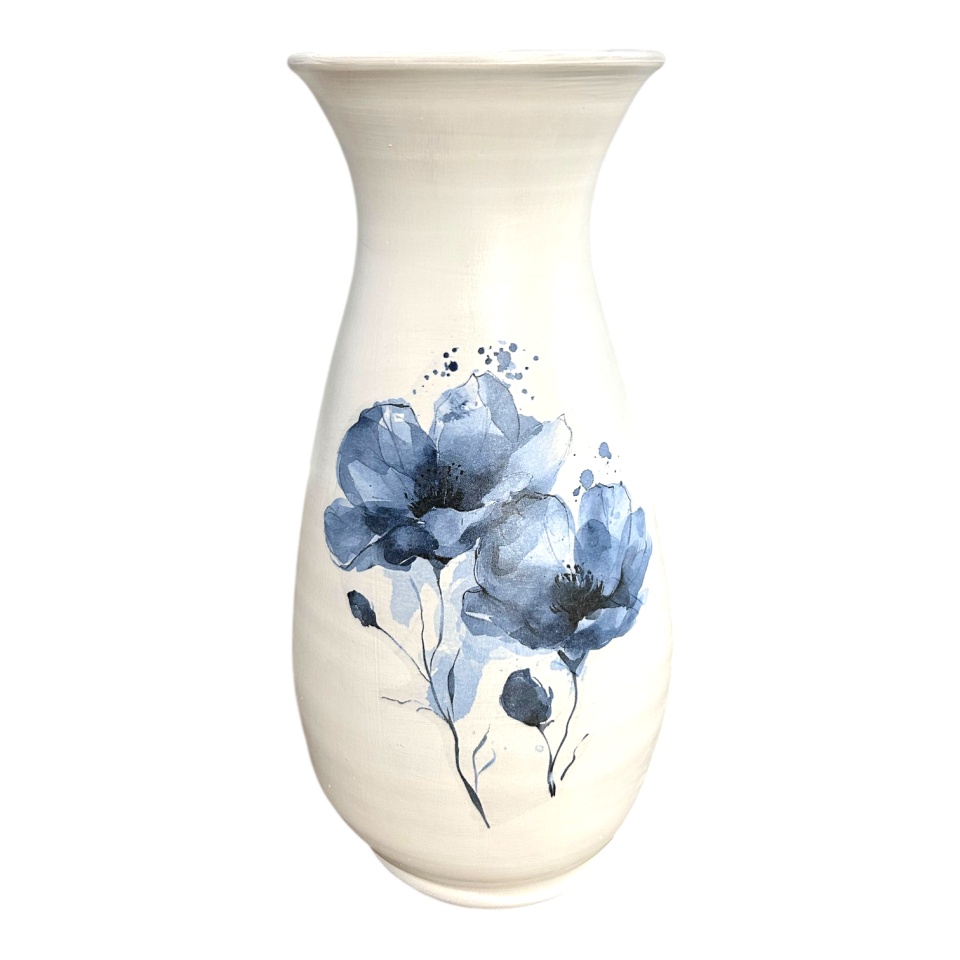 Această vază elegantă, cu un fundal alb și decorată cu un frumos model floral, este perfectă pentru a aduce un strop de rafinament și căldură în orice încăpere. Designul floral completează subtil liniile clasice ale vazei, creând o piesă decorativă versatilă, ideală pentru a înfrumuseța spațiile interioare. Potrivită pentru flori naturale, uscate sau ca element de decor independent, această vază va aduce un plus de eleganță și farmec decorului casei tale.