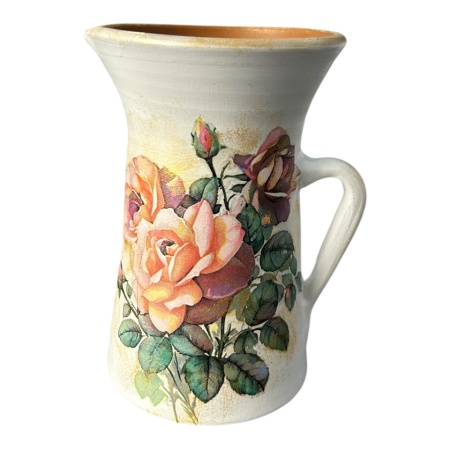 Vaza buchet de trandafiri.Produs lucrat manual in Bucovina de mesteri locali. Fiecare piesa este realizata in atelierul Ceramica Martinescu din Bucovina. Vazele sunt ideale pentru a fi oferite cadou sau pentru a infrumuseta spatiile de locuit.