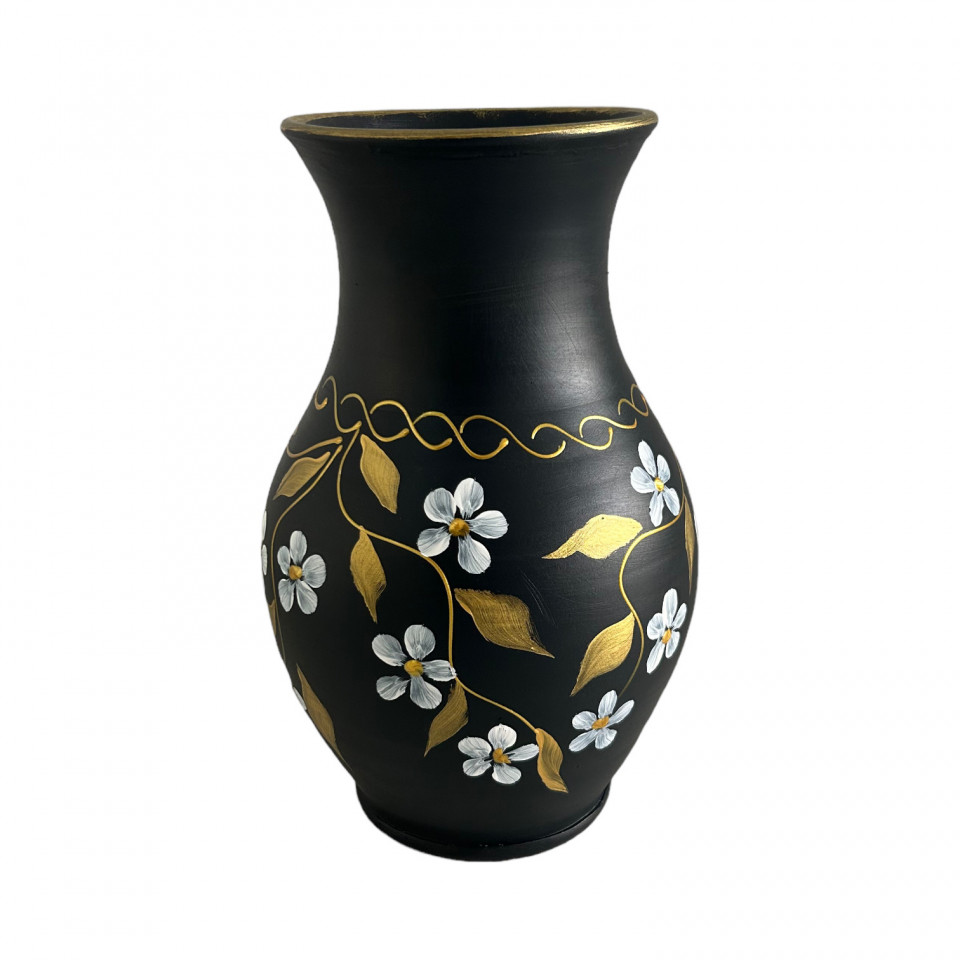 Vaza ceramica neagra, eleganta, pictata manual