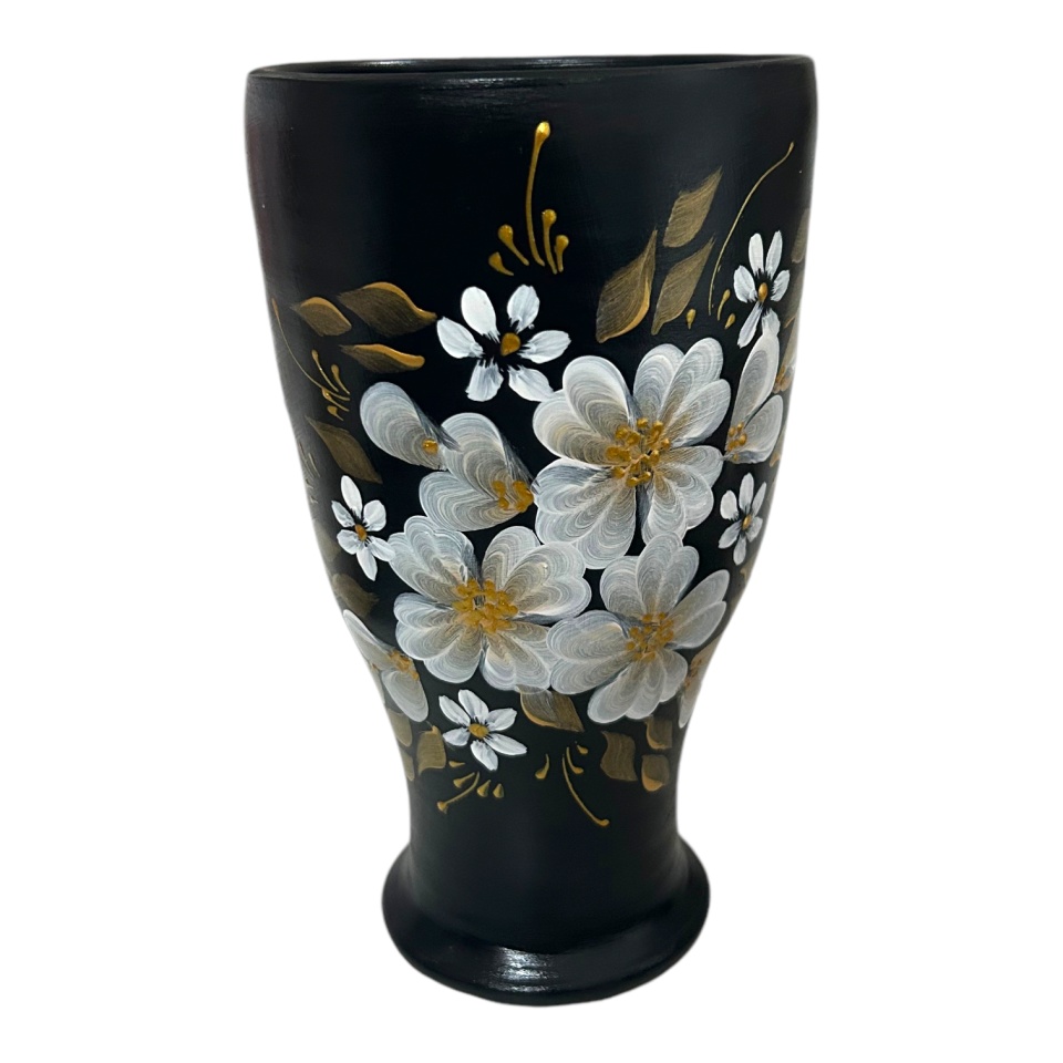Vaza ceramica neagra, eleganta, pictata manual
