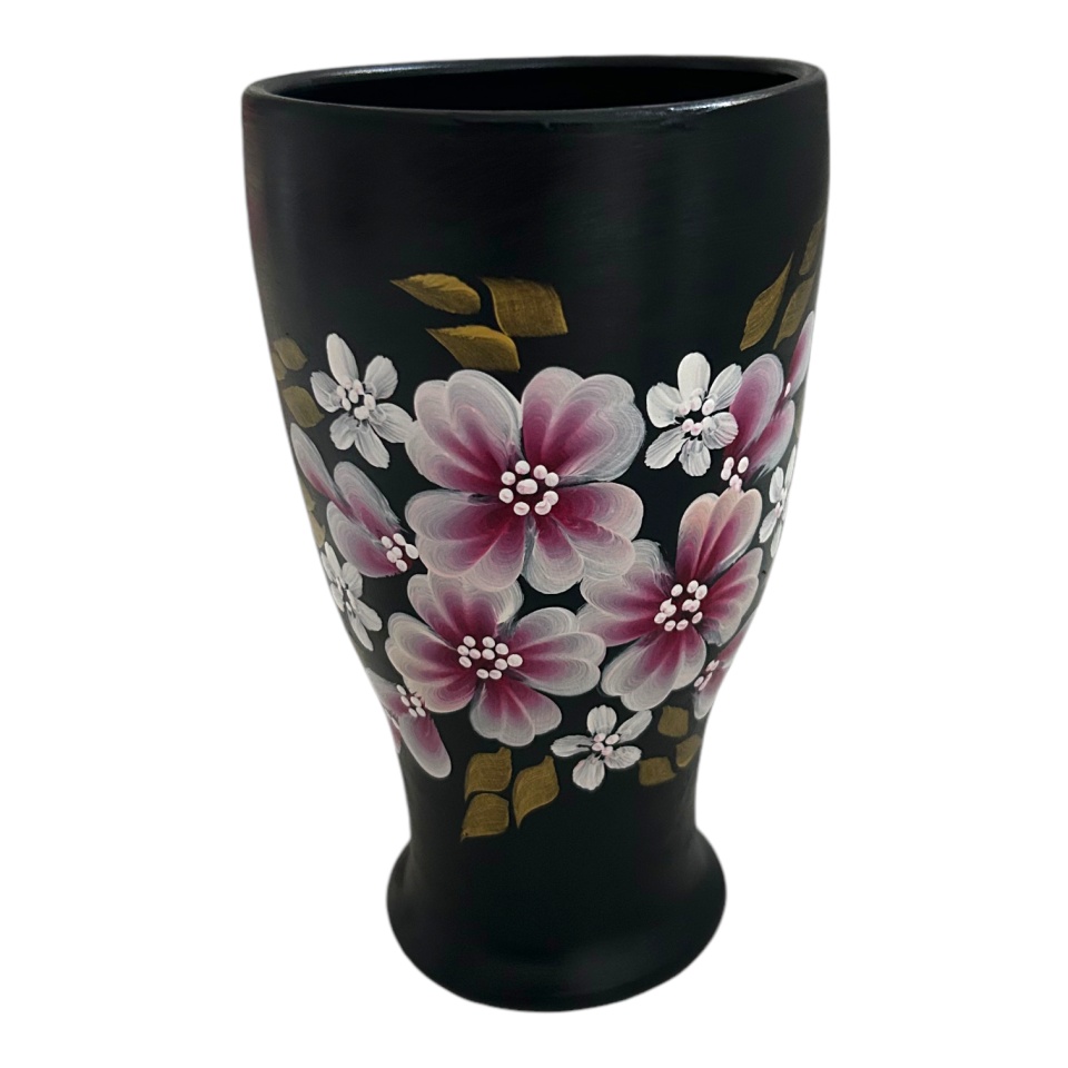 Vaza ceramica neagra, eleganta, pictata manual