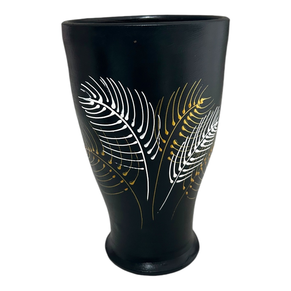 Vaza ceramica neagra, eleganta, pictata manual