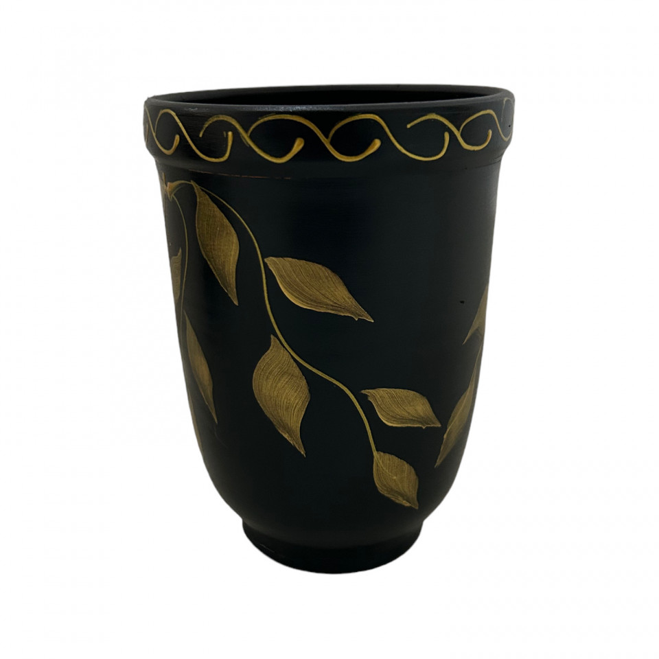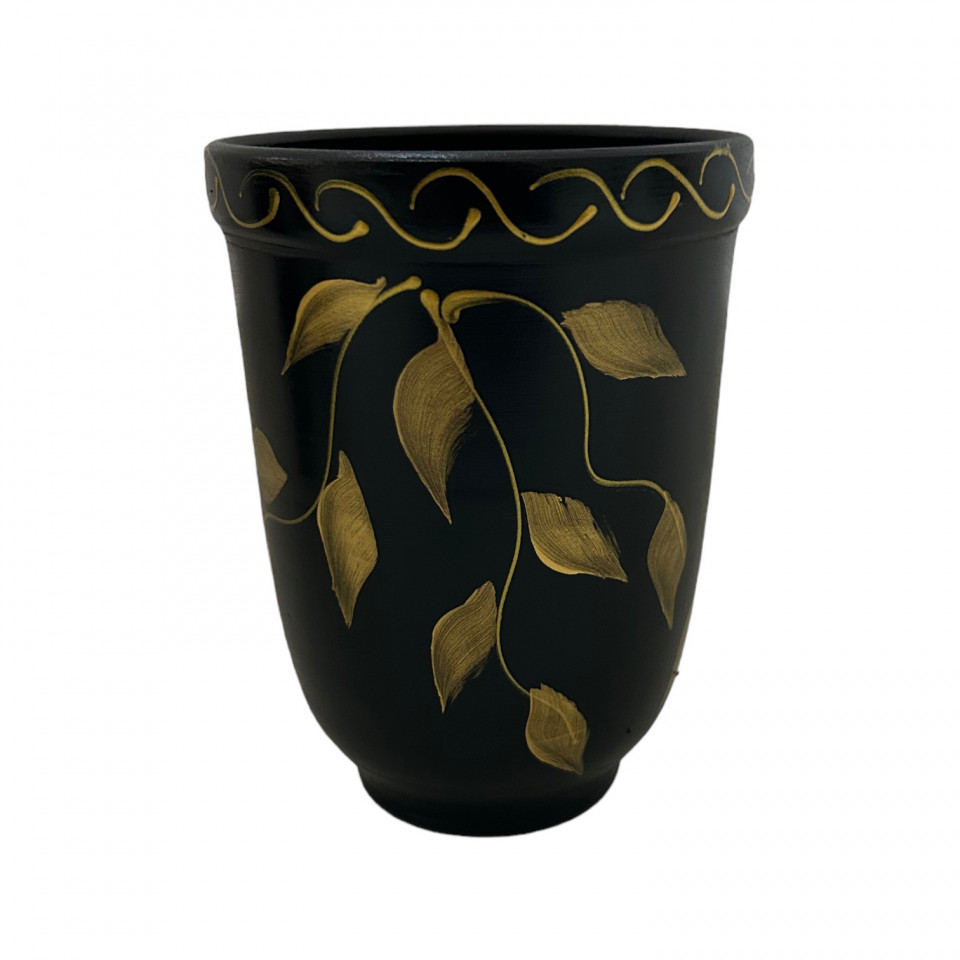 Vaza ceramica neagra, pictata manual, 15 cm