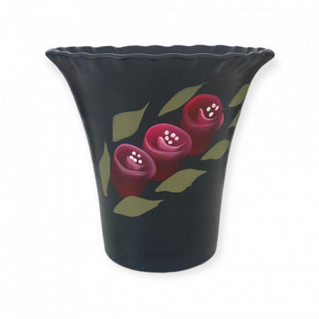 Vaza ceramica neagra, pictata manual, 20 cm