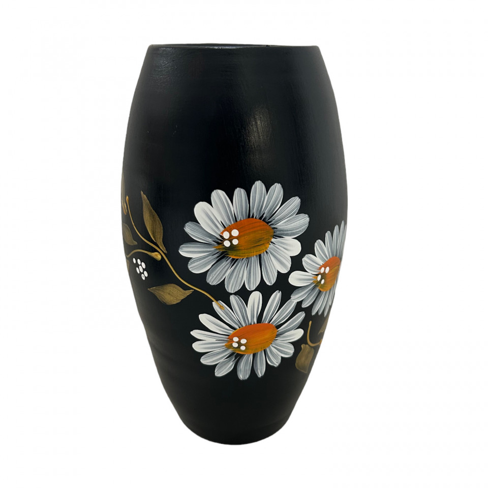Vaza ceramica neagra, pictata manual, 25cm