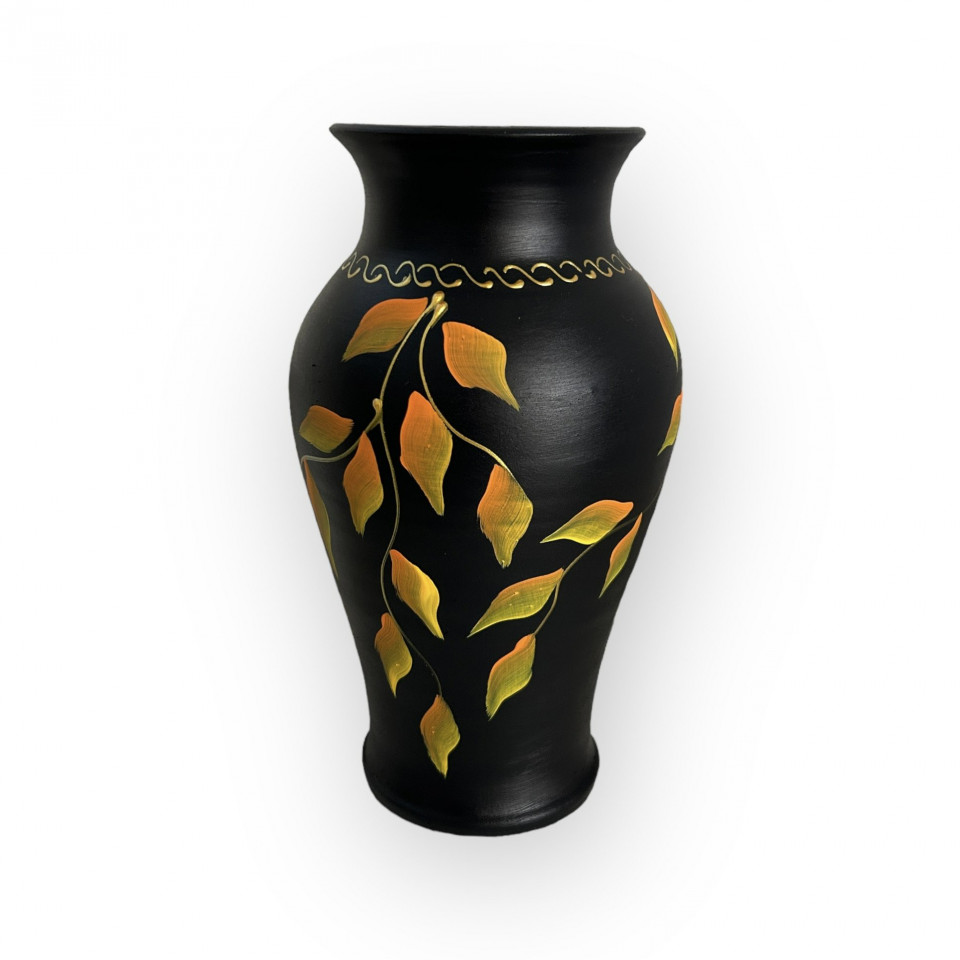 Vaza ceramica neagra, pictata manual, frunze 30 cm