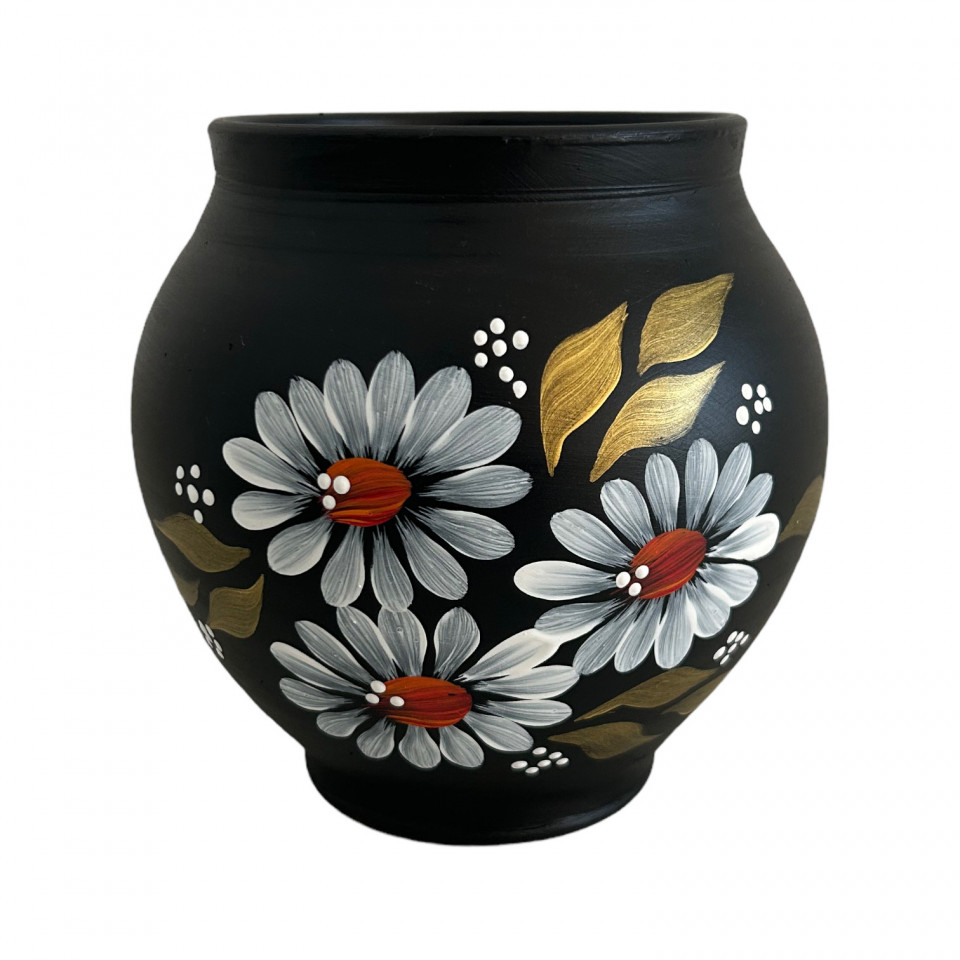Vaza ceramica neagra pictata manual,margarete