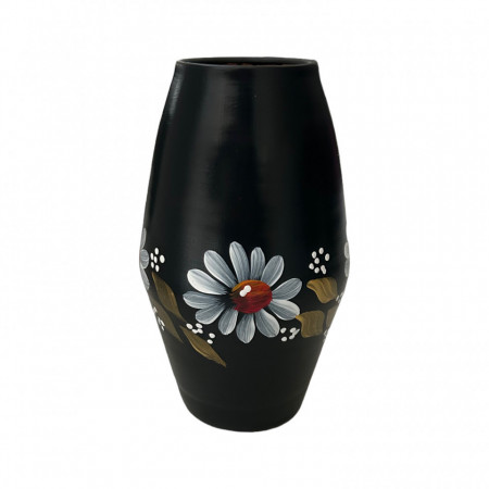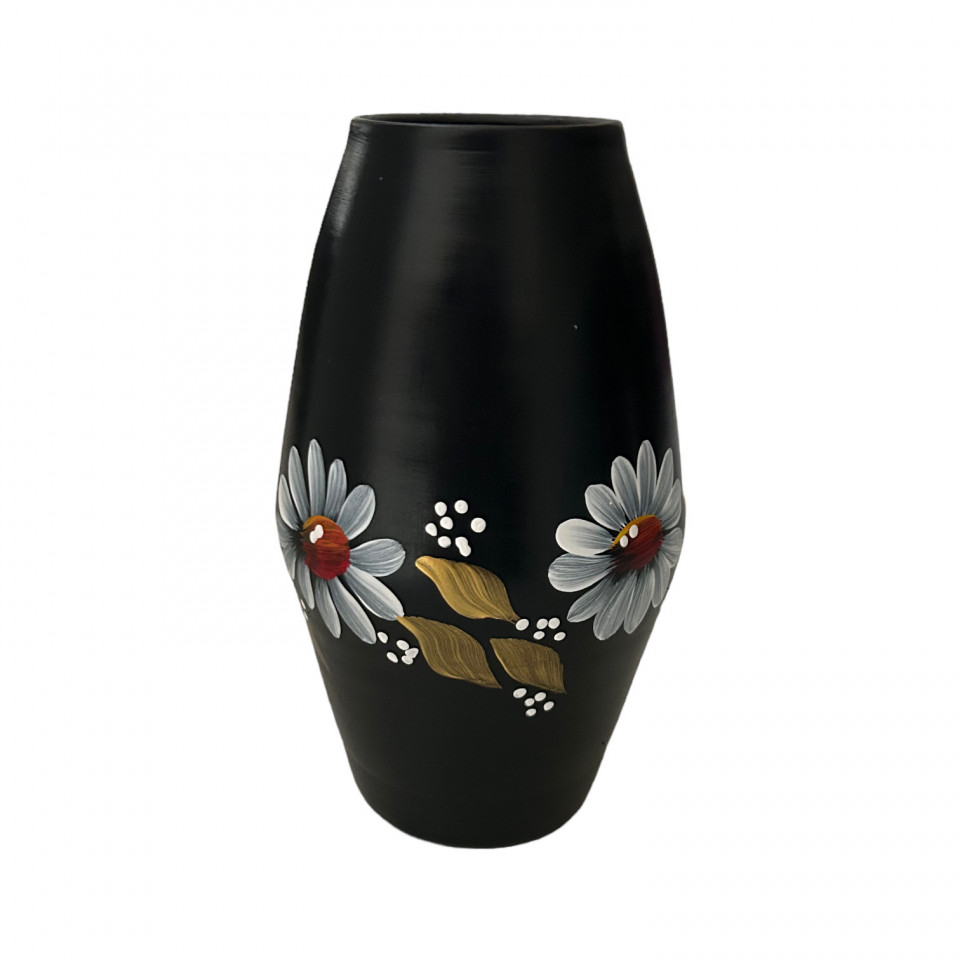 Vaza ceramica neagra, pictata manual, margarete