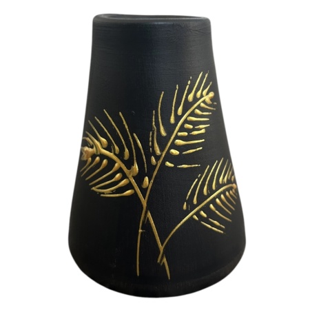 Vază decorativă din ceramică, cu o înălțime de 15 cm, ideală pentru a adăuga un accent deosebit oricărui spațiu. Dimensiunea compactă o face potrivită pentru rafturi, mese sau noptiere, fiind un element decorativ versatil. Fabricată manual, fiecare piesă are un finisaj unic, oferind un plus de autenticitate. Perfectă pentru a completa decorul casei sau pentru a fi oferită cadou.
