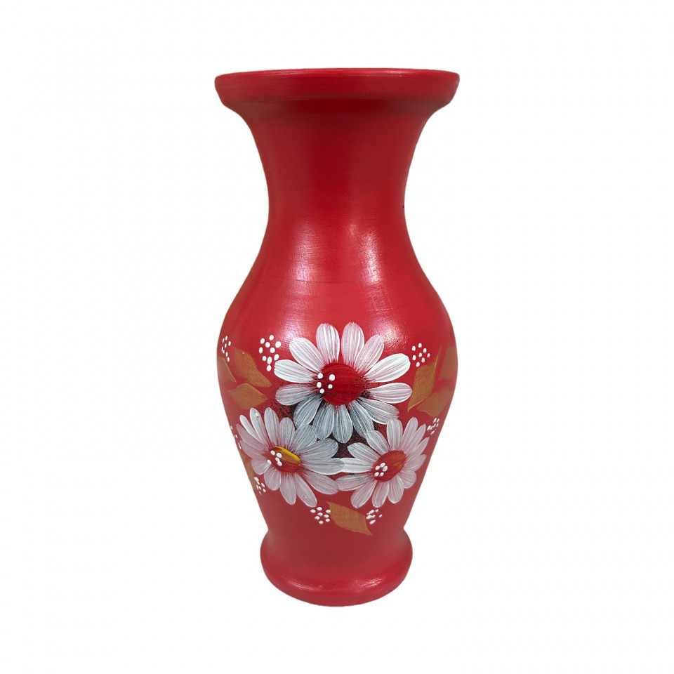 Vaza ceramica rosie, pictata manual, 27 cm