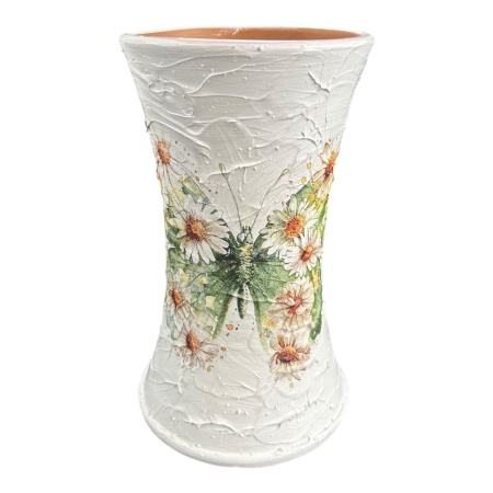 Adaugă o notă delicată și plină de viață în casa ta cu această vază decorativă cu fluture, lucrată manual în atelierul nostru din Bucovina. Această piesă aduce o atmosferă luminoasă și aerisită, potrivită pentru orice spațiu ce dorește un plus de naturalețe și eleganță subtilă.