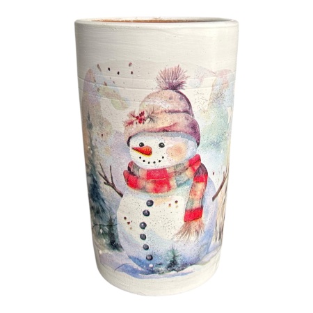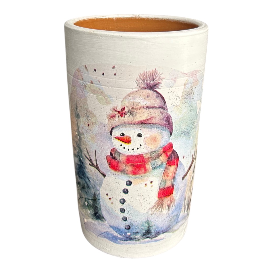 Aceasta vaza decorativa surprinde farmecul iernii intr-un mod vesel si elegant, cu un peisaj care include un om de zapada imbracat cu fular si caciula, evocand spiritul sarbatorilor. Tonurile delicate si detaliile subtile creeaza o atmosfera calda si primitoare, ideala pentru orice incapere in sezonul rece. Realizata din ceramica alba si avand o inaltime de 20 cm, vaza poate fi folosita pentru flori de sezon, crengute decorative sau ca piesa de accent pe masa, raft ori semineu. O vaza care adauga magie, veselie si rafinament in decorul de iarna.