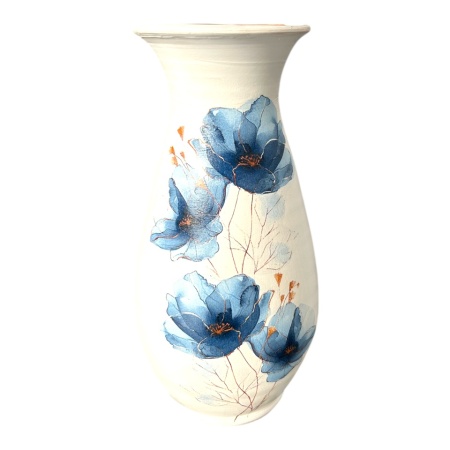 Această vază elegantă, cu un fundal alb și decorată cu un frumos model floral, este perfectă pentru a aduce un strop de rafinament și căldură în orice încăpere. Designul floral completează subtil liniile clasice ale vazei, creând o piesă decorativă versatilă, ideală pentru a înfrumuseța spațiile interioare. Potrivită pentru flori naturale, uscate sau ca element de decor independent, această vază va aduce un plus de eleganță și farmec decorului casei tale.