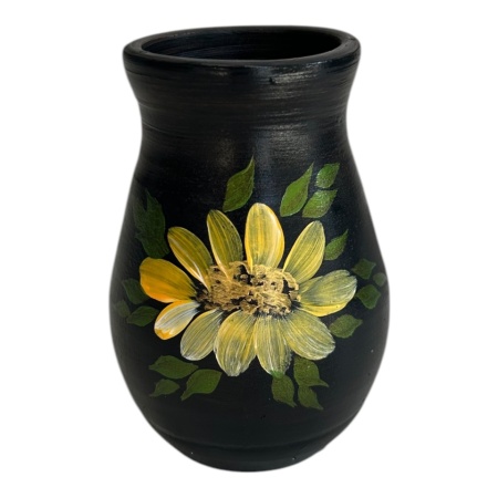 Vază decorativă din ceramică, cu o înălțime de 15 cm, ideală pentru a adăuga un accent deosebit oricărui spațiu. Dimensiunea compactă o face potrivită pentru rafturi, mese sau noptiere, fiind un element decorativ versatil. Fabricată manual, fiecare piesă are un finisaj unic, oferind un plus de autenticitate. Perfectă pentru a completa decorul casei sau pentru a fi oferită cadou.