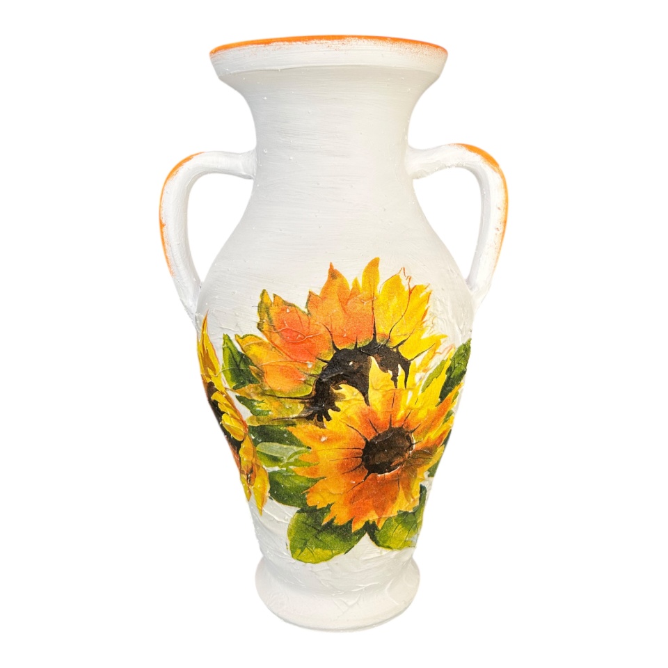 Vaza tip amfora, ceramică cu floarea soarelui, lucrată manual, Marginea